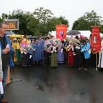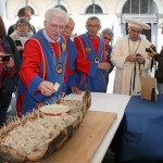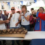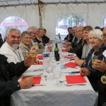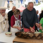 Il a fallu rapatrier à la hâte le matériel sous un chapiteau pour pouvoir introniser 2 nouveaux confrères : Jean-Yves DIJOL président de la commission OVALTEAM partenaire du Bleu d’Auvergne avec l’association Rugby amateur et Jean-Louis GALVAING grand organisateur de ‘Festibleu’. Le beau temps revenu, les visiteurs ont bien profité du Brie de Meaux médaille d’or 2016 proposé par les confrères.