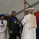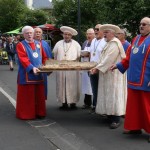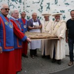 La chaleur accompagnait bien sûr les confrères et les visiteurs, près de 20.000 selon les organisateurs (on n’a pas demandé à la police !) sauf… le samedi matin lors de l’inauguration suivie des chapitres d’intronisation de nos 2 confréries.