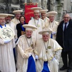 Sur les conseils de Frédéric, journaliste à FR3, nous nous sommes prêtés avec plaisir au jeu du tournage… couper, on refait ce plan, etc, etc…), devant la cathédrale, avec reconstitution d’une intronisation.